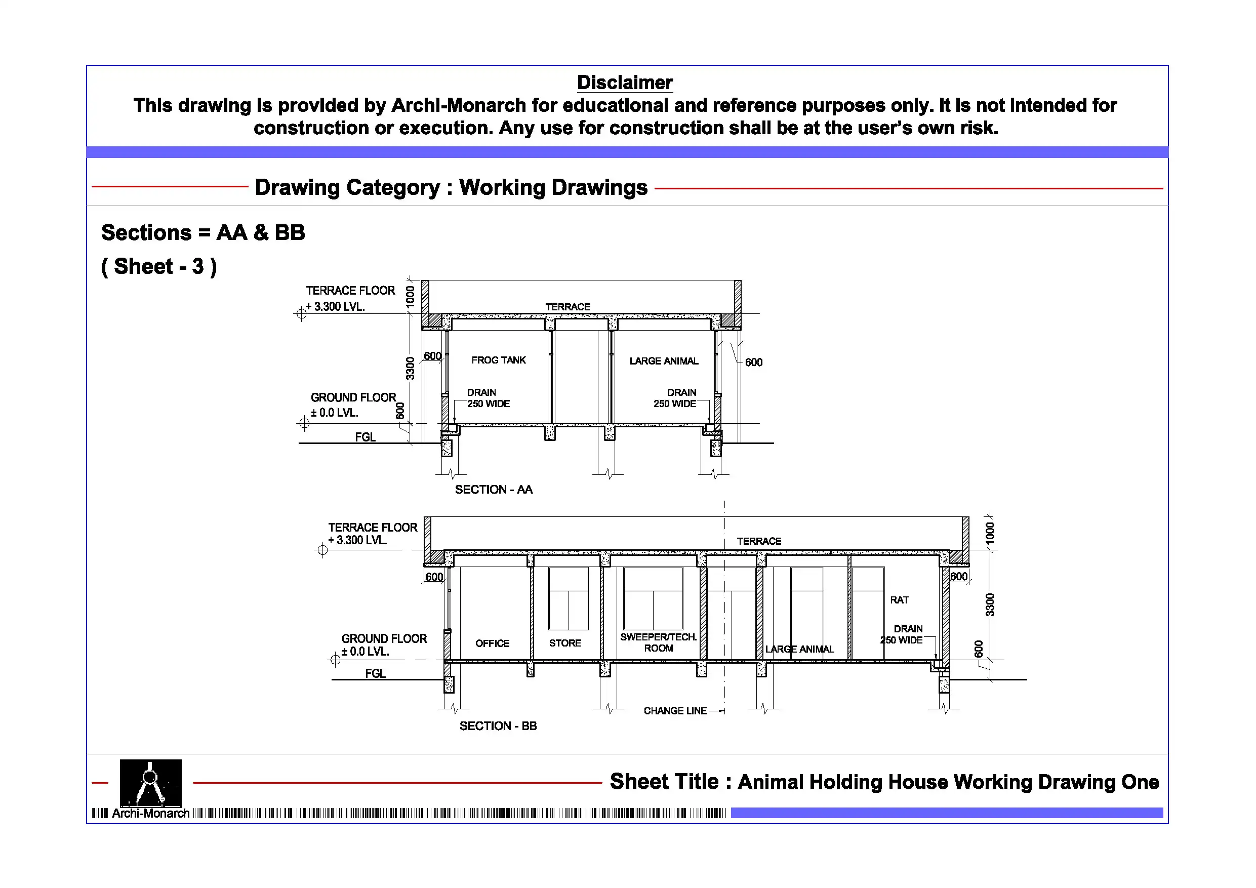 Animal Holding House Working Drawing One