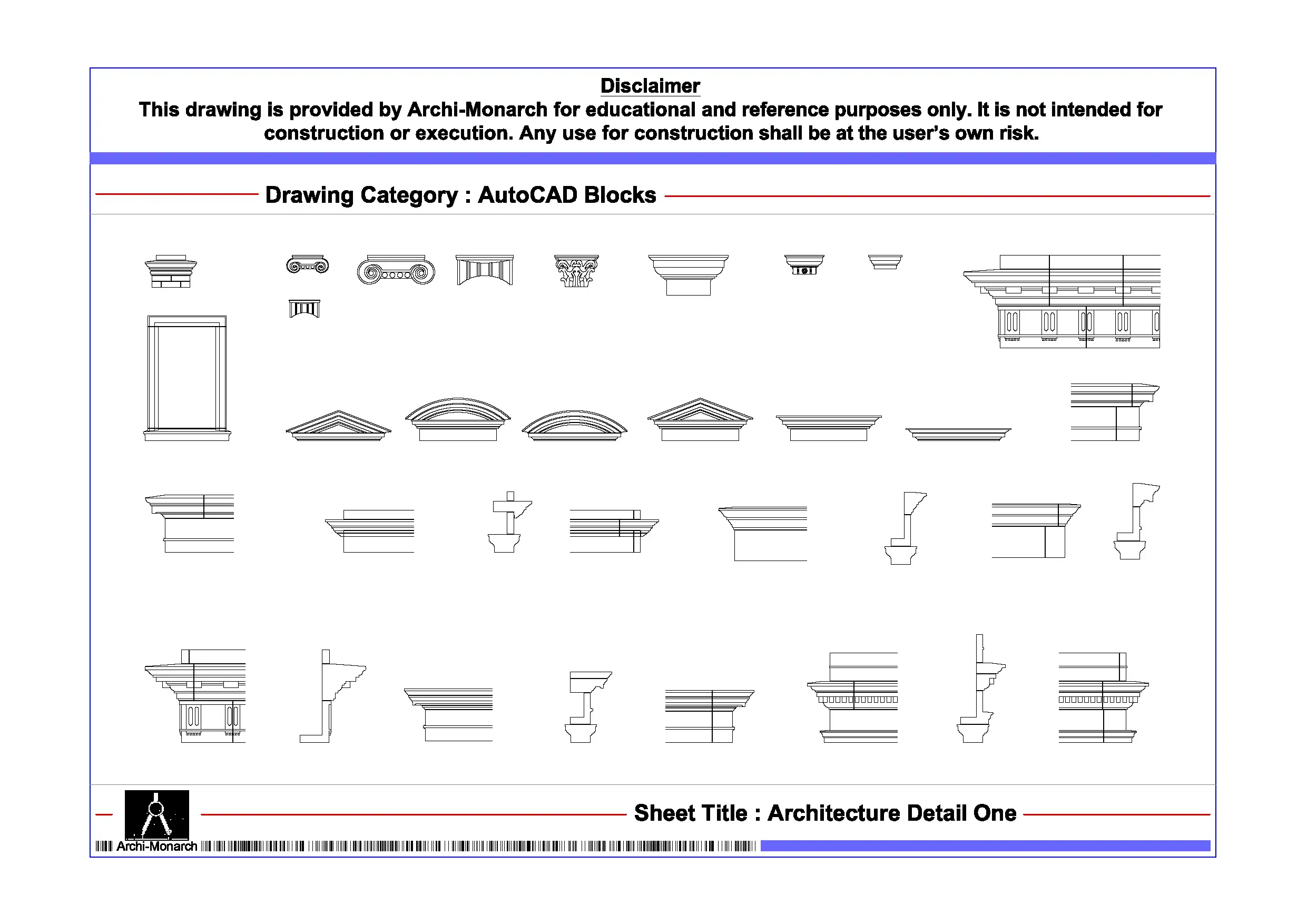 • Professionally drafted Architecture Detail AutoCAD blocks