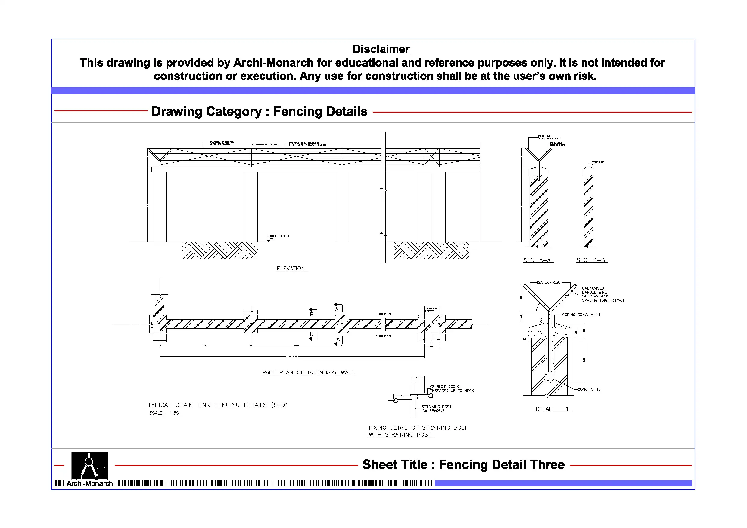 Fencing Detail Three – Architectural Fencing Detail Drawing | Archi-Monarch