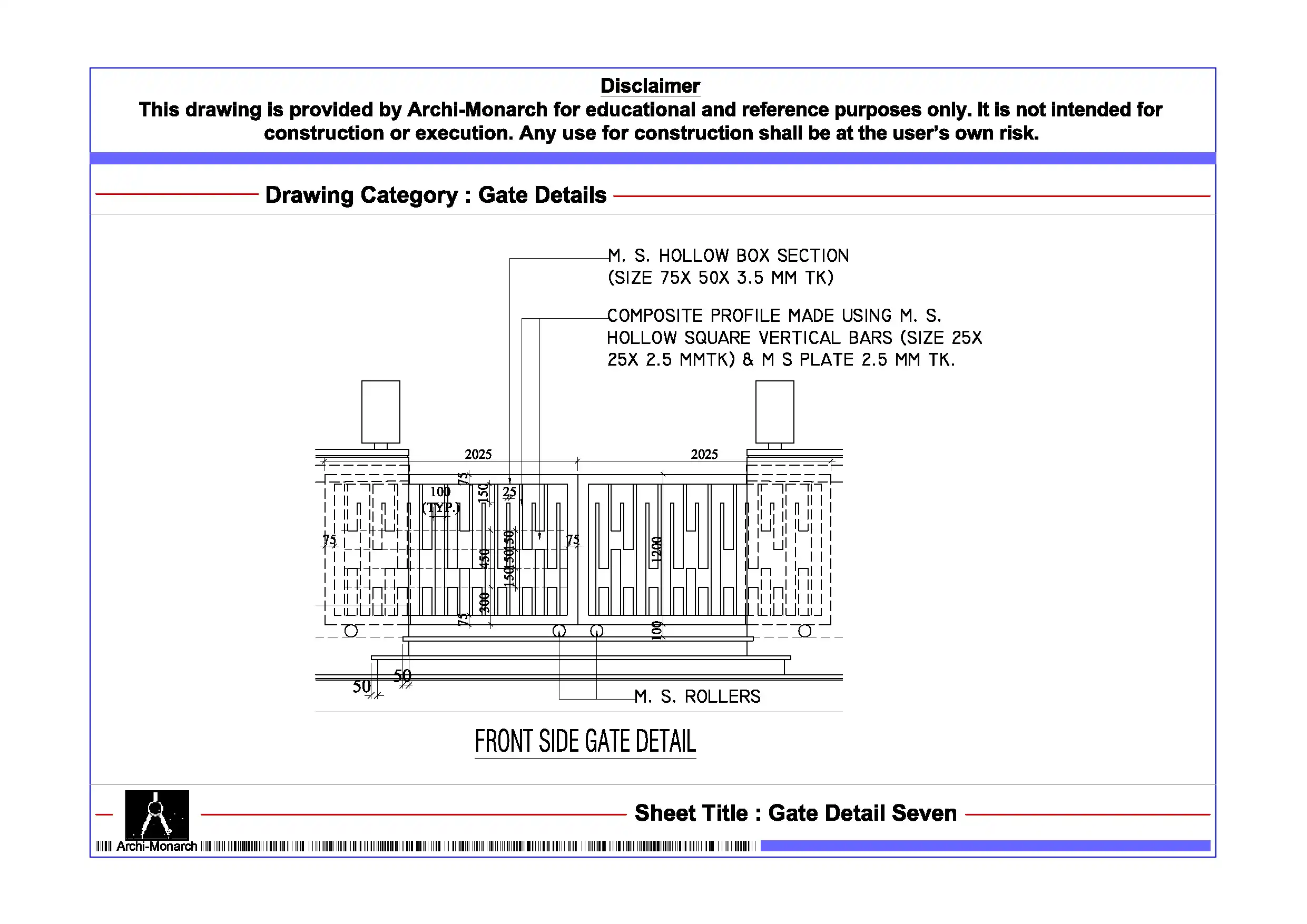 Gate Detail Seven – Architectural Gate Detail Drawing | Archi-Monarch