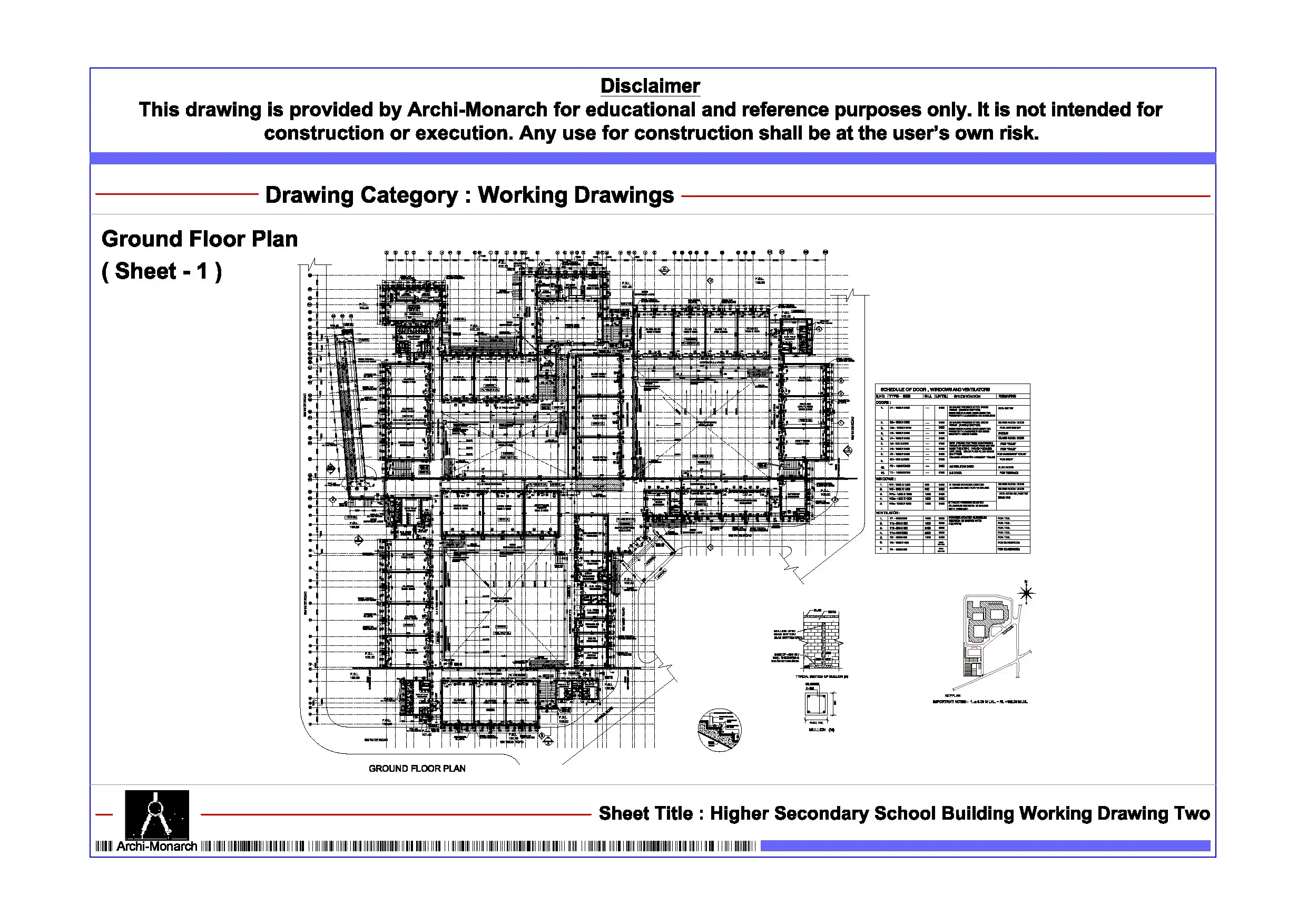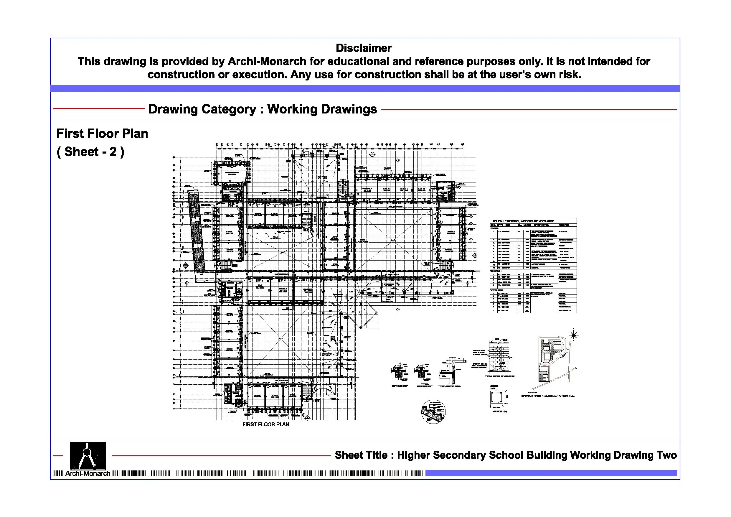 Higher Secondary School Building Working Drawing Two