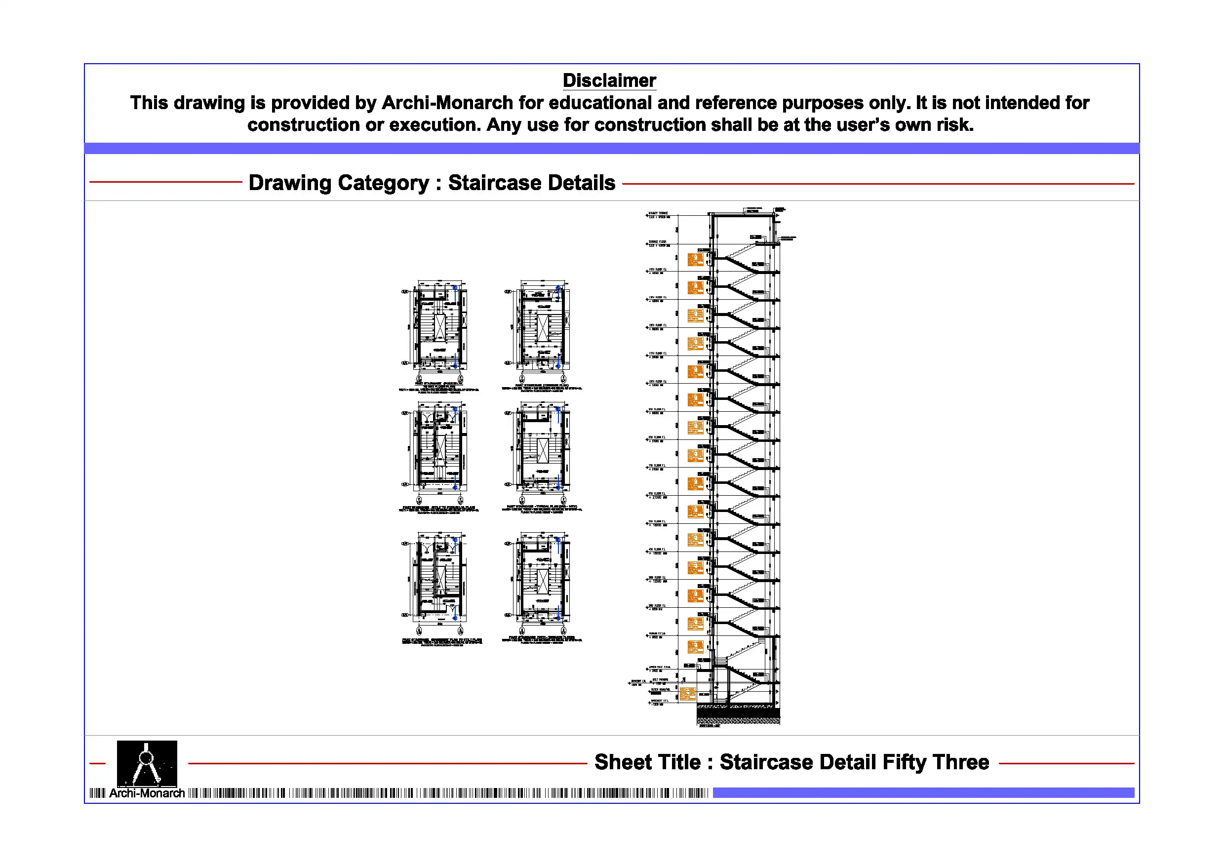 Overall, this Staircase Detail DWG serves as a valuable learning resource that supports architectural education and enhances understanding of staircase design fundamentals. It also helps users build confidence in creating clear, accurate, and professional architectural drawings.