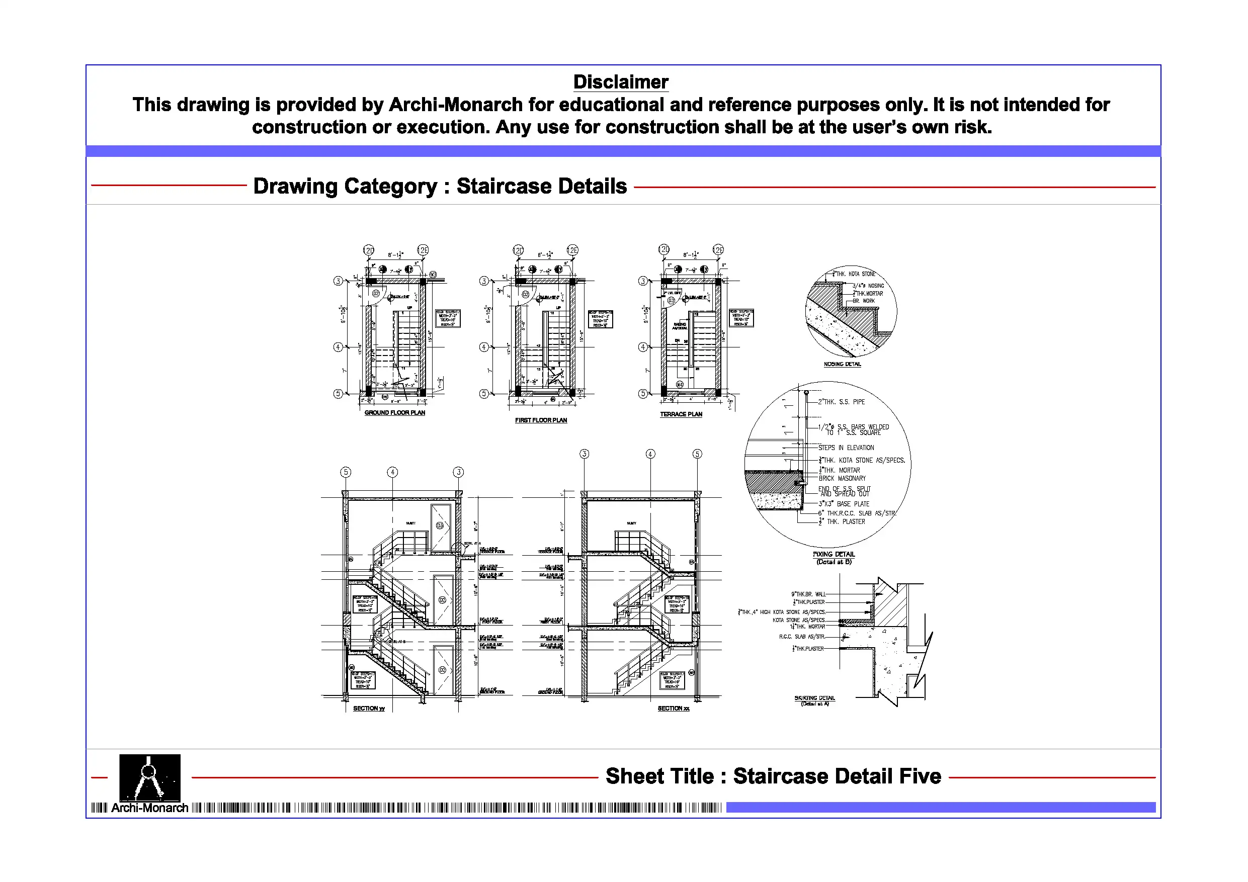 Overall, this Staircase Detail DWG serves as a valuable learning resource that supports architectural education and enhances understanding of staircase design fundamentals. It also helps users build confidence in creating clear, accurate, and professional architectural drawings.