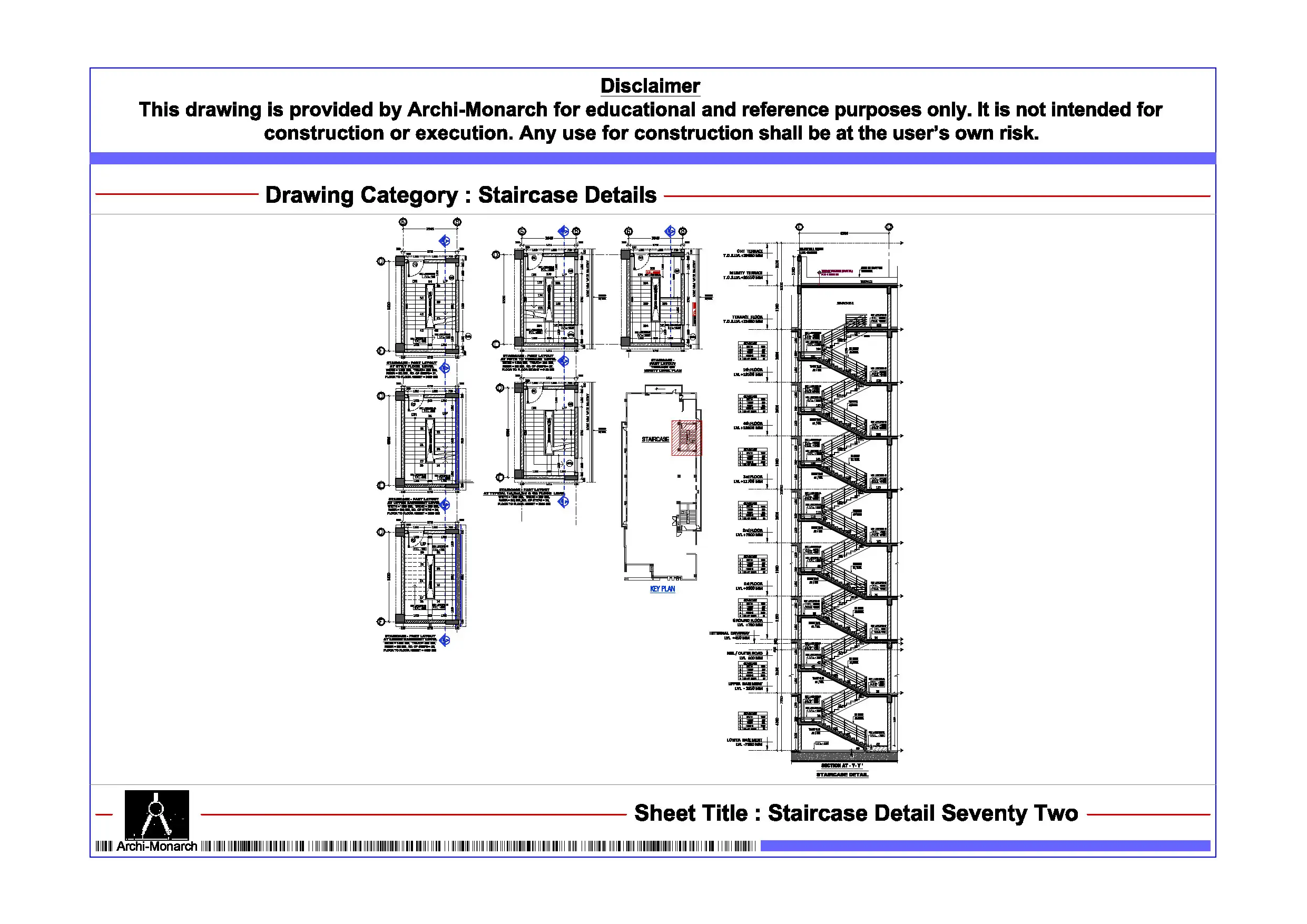 The Staircase Detail is a professionally drafted architectural standard drawing in DWG format, created specifically for educational and reference use only. Staircases play a vital role in vertical circulation, safety, and spatial planning within buildings. Therefore, understanding their layout, dimensions, and construction details is essential for architecture students and beginner architects.