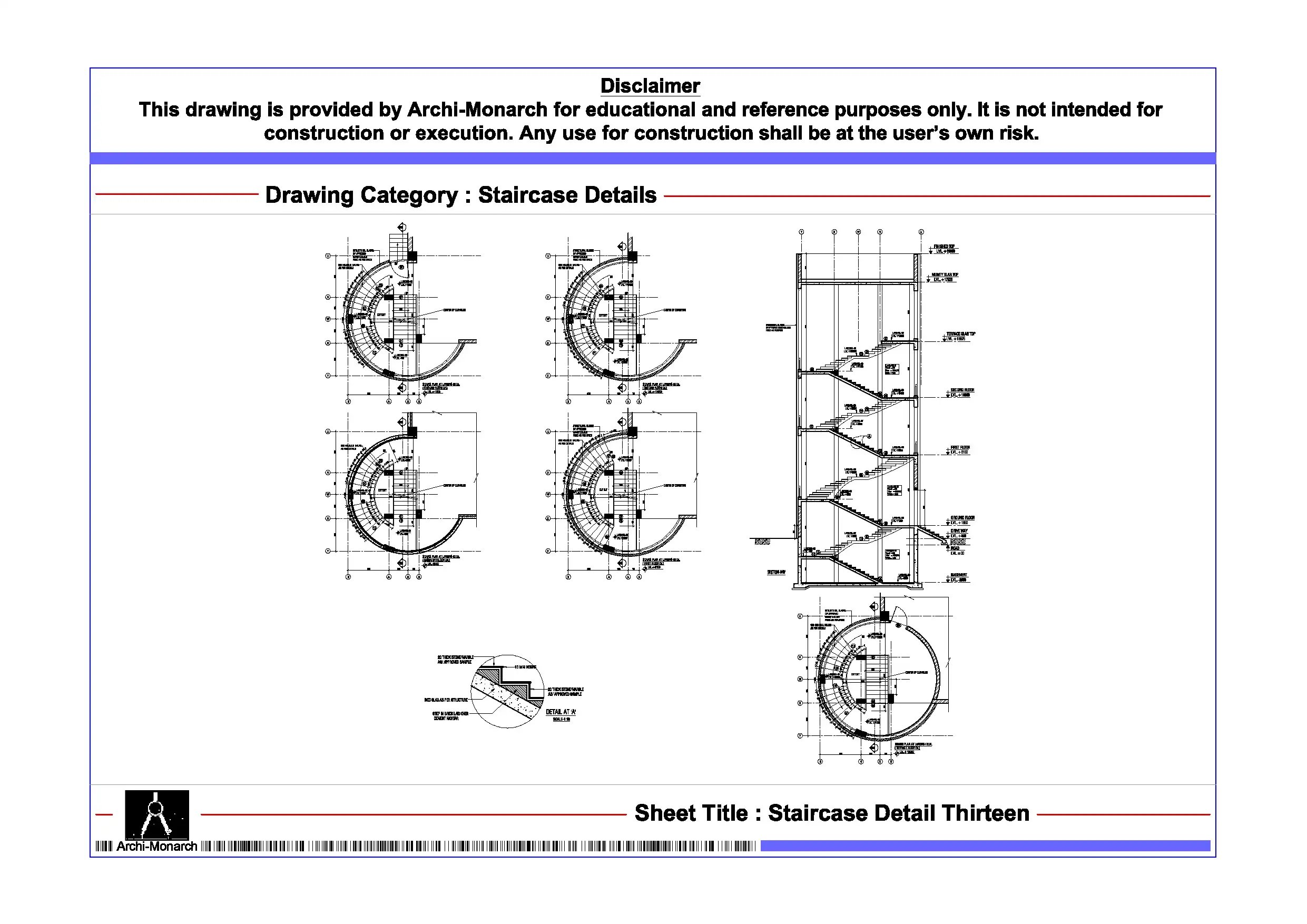 Overall, this Staircase Detail DWG serves as a valuable learning resource that supports architectural education and enhances understanding of staircase design fundamentals. It also helps users build confidence in creating clear, accurate, and professional architectural drawings.