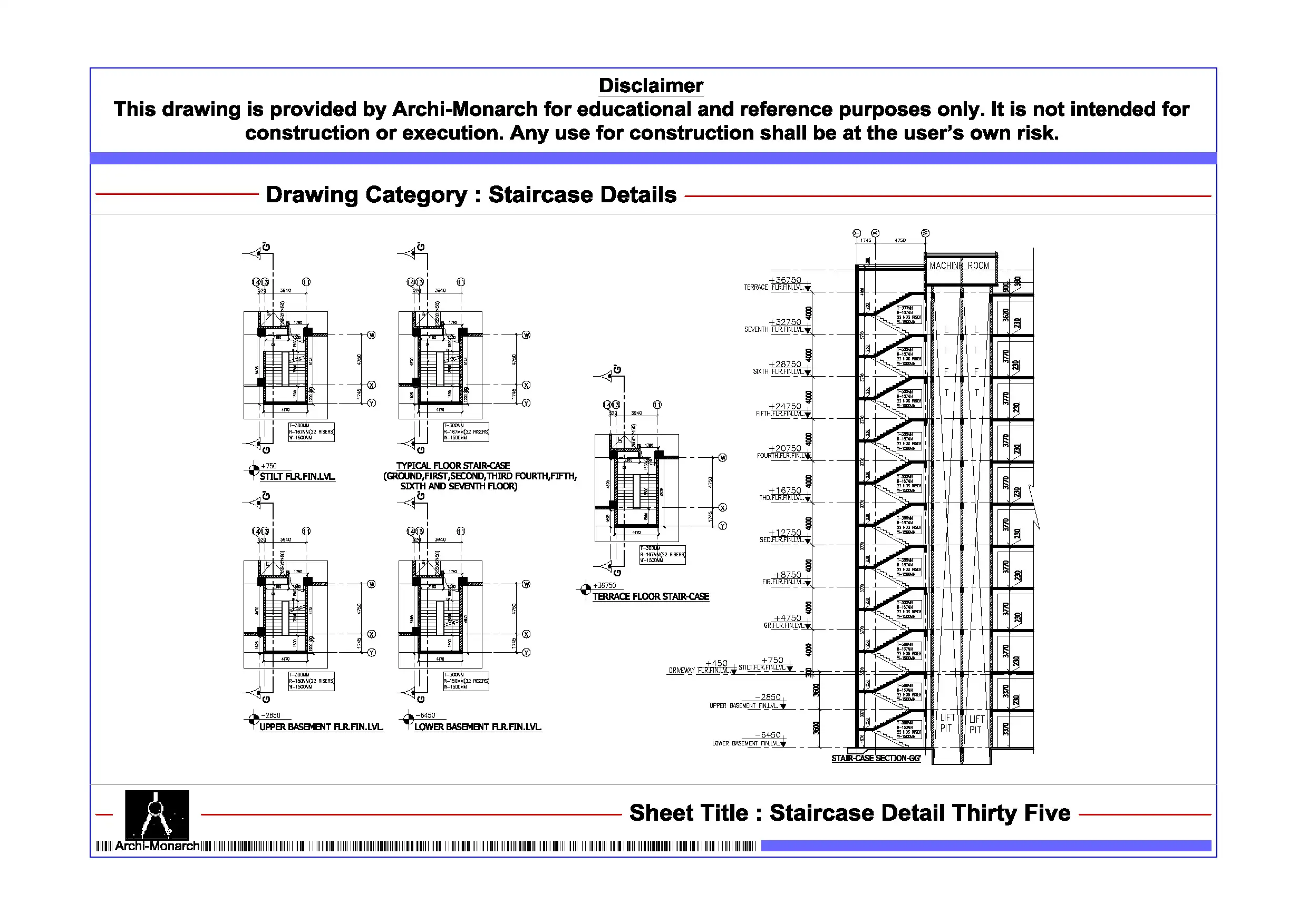 Overall, this Staircase Detail DWG serves as a valuable learning resource that supports architectural education and enhances understanding of staircase design fundamentals. It also helps users build confidence in creating clear, accurate, and professional architectural drawings.