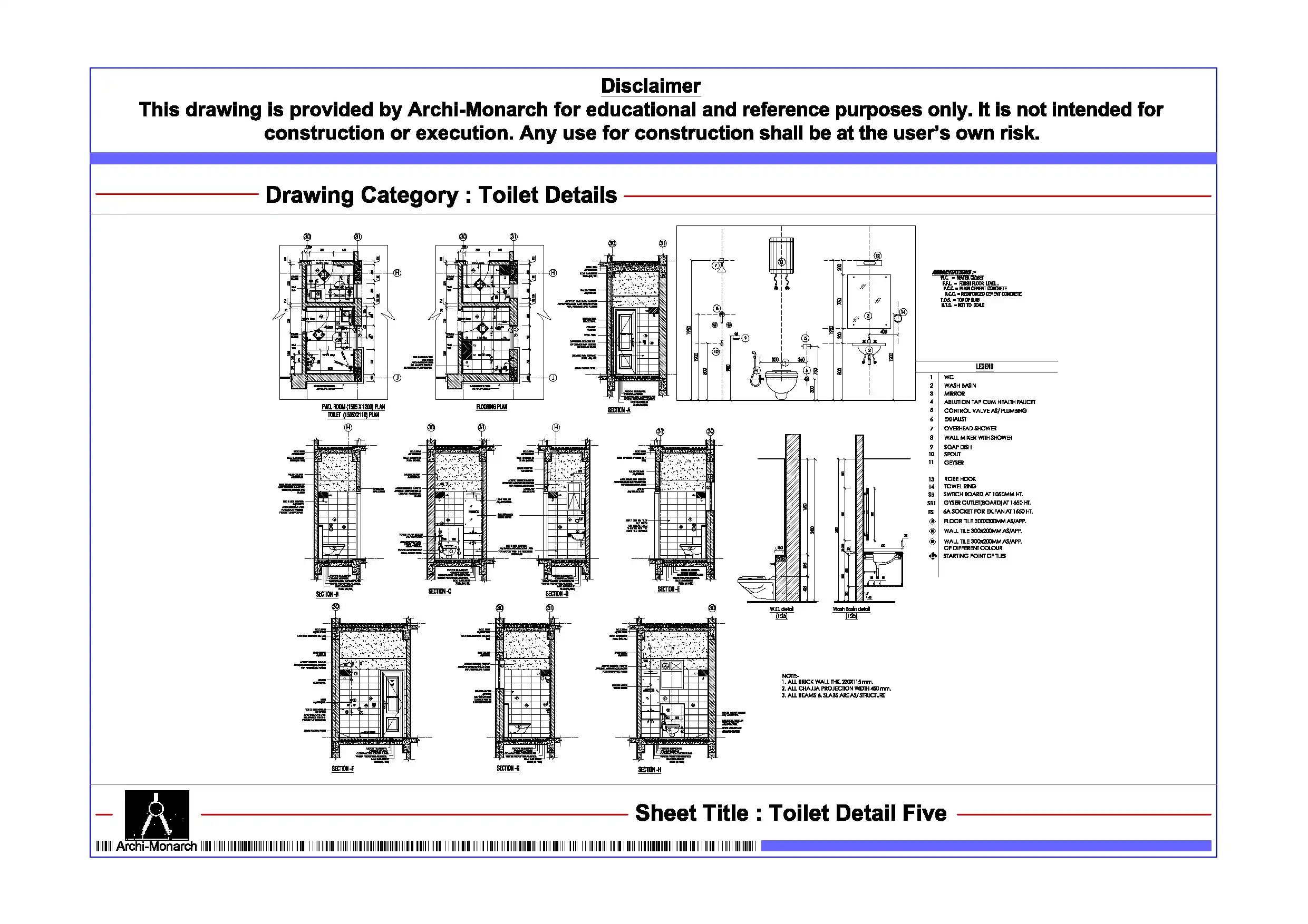 Toilet Detail Five – Architectural Toilet Detail Drawing | Archi-Monarch