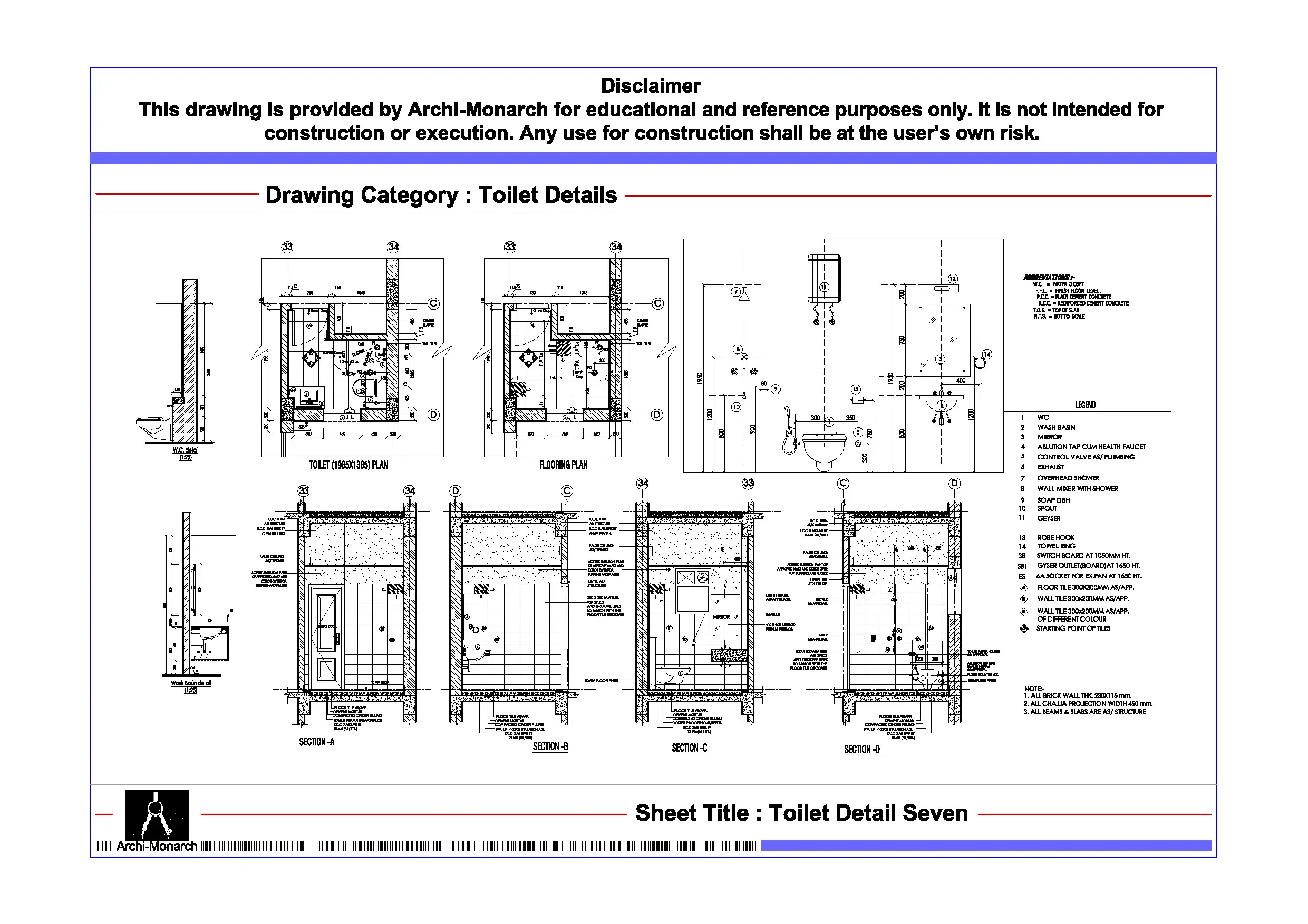 Toilet Detail Seven – Architectural Toilet Detail Drawing | Archi-Monarch