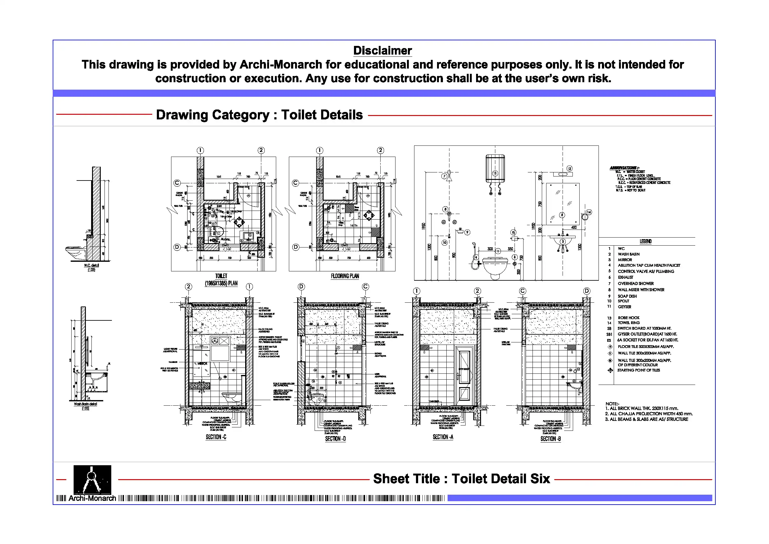 Toilet Detail Six – Architectural Toilet Detail Drawing | Archi-Monarch
