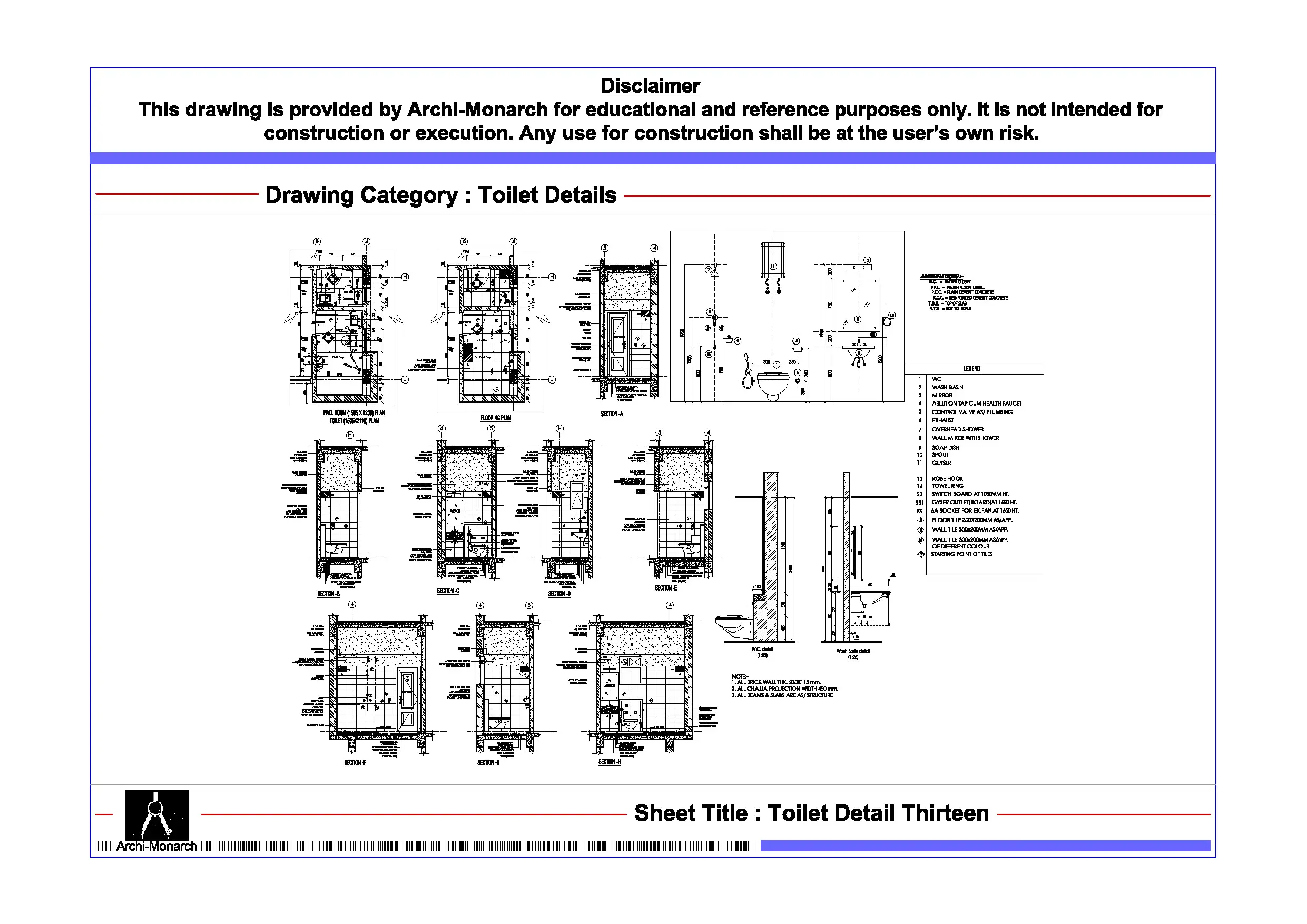 • Helps understand toilet space planning and detailing