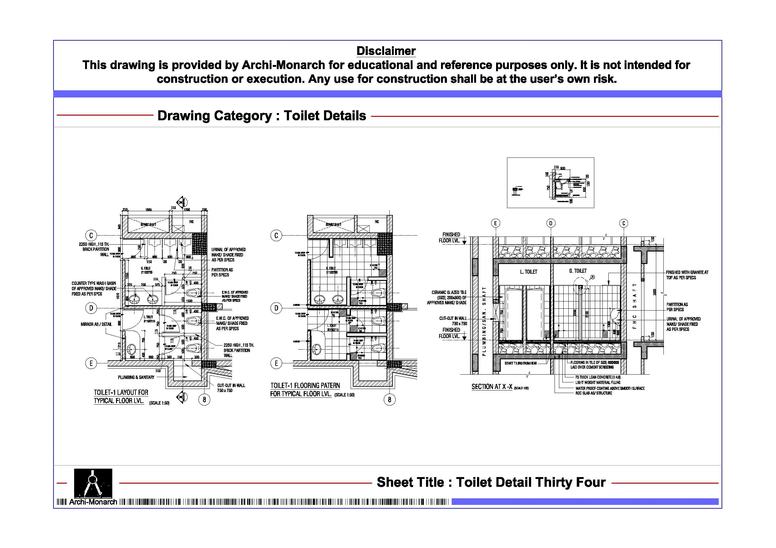 Toilet Detail Thirty Five – Architectural Toilet Detail Drawing | Archi-Monarch