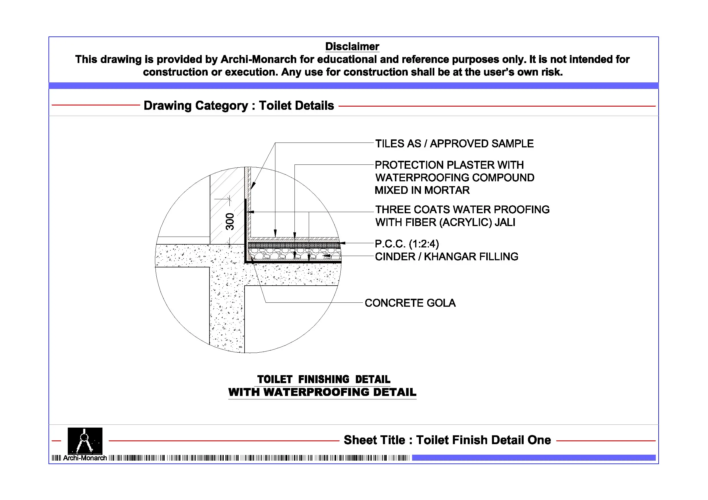 Toilet Detail One – Architectural Toilet Detail Drawing | Archi-Monarch
