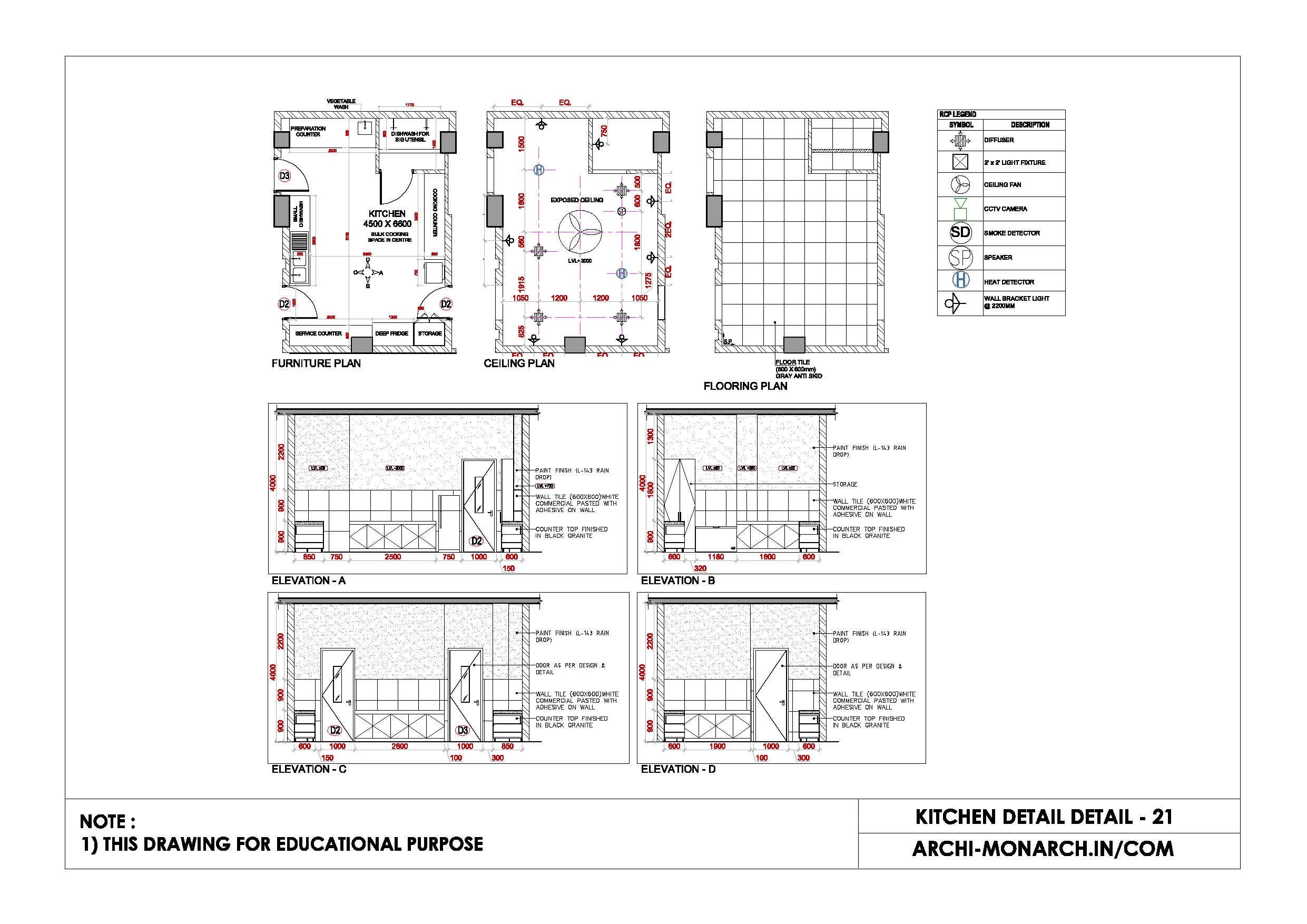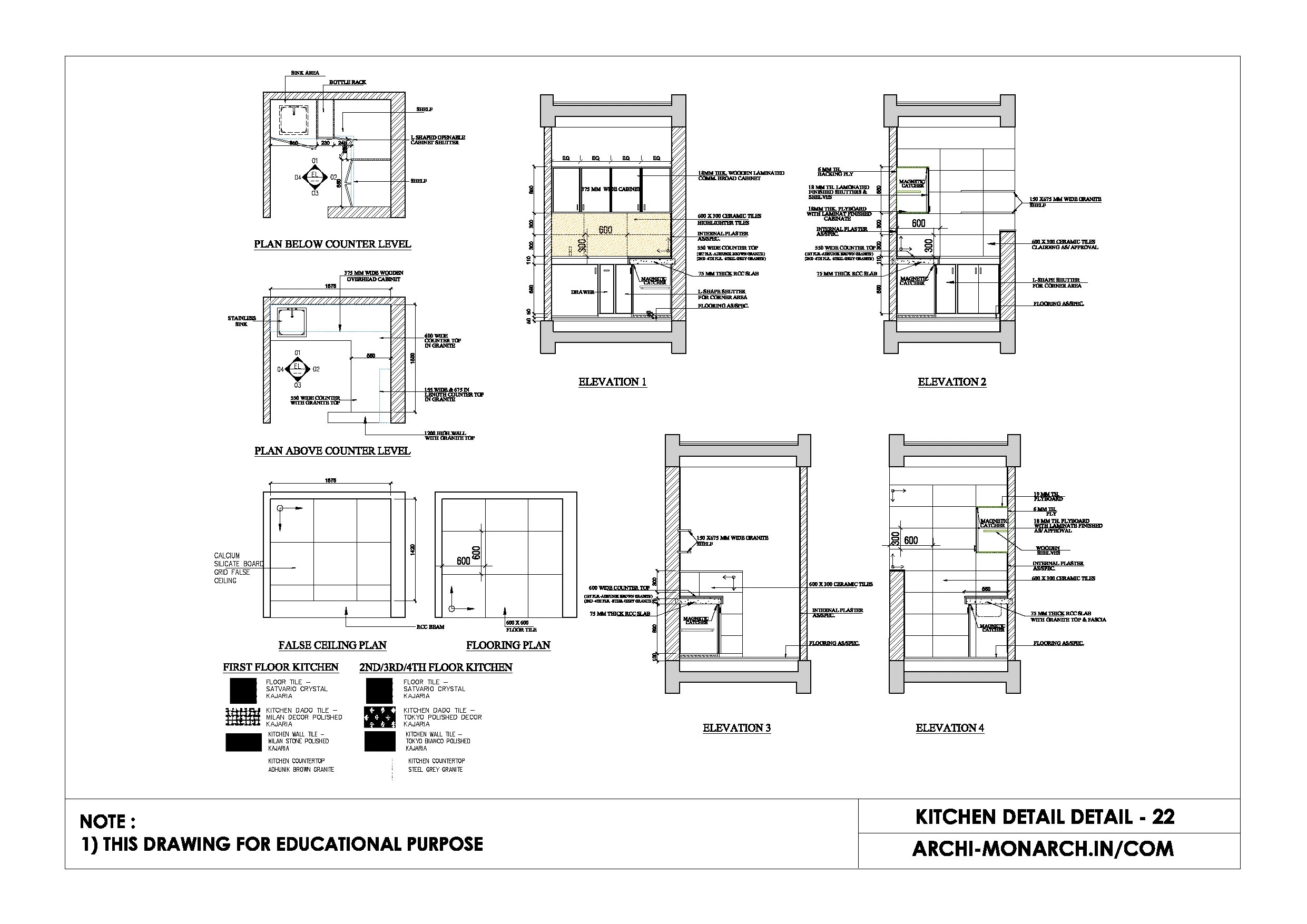 Architectural kitchen detail drawings are technical drawings that show specific information about the design and construction of a kitchen.