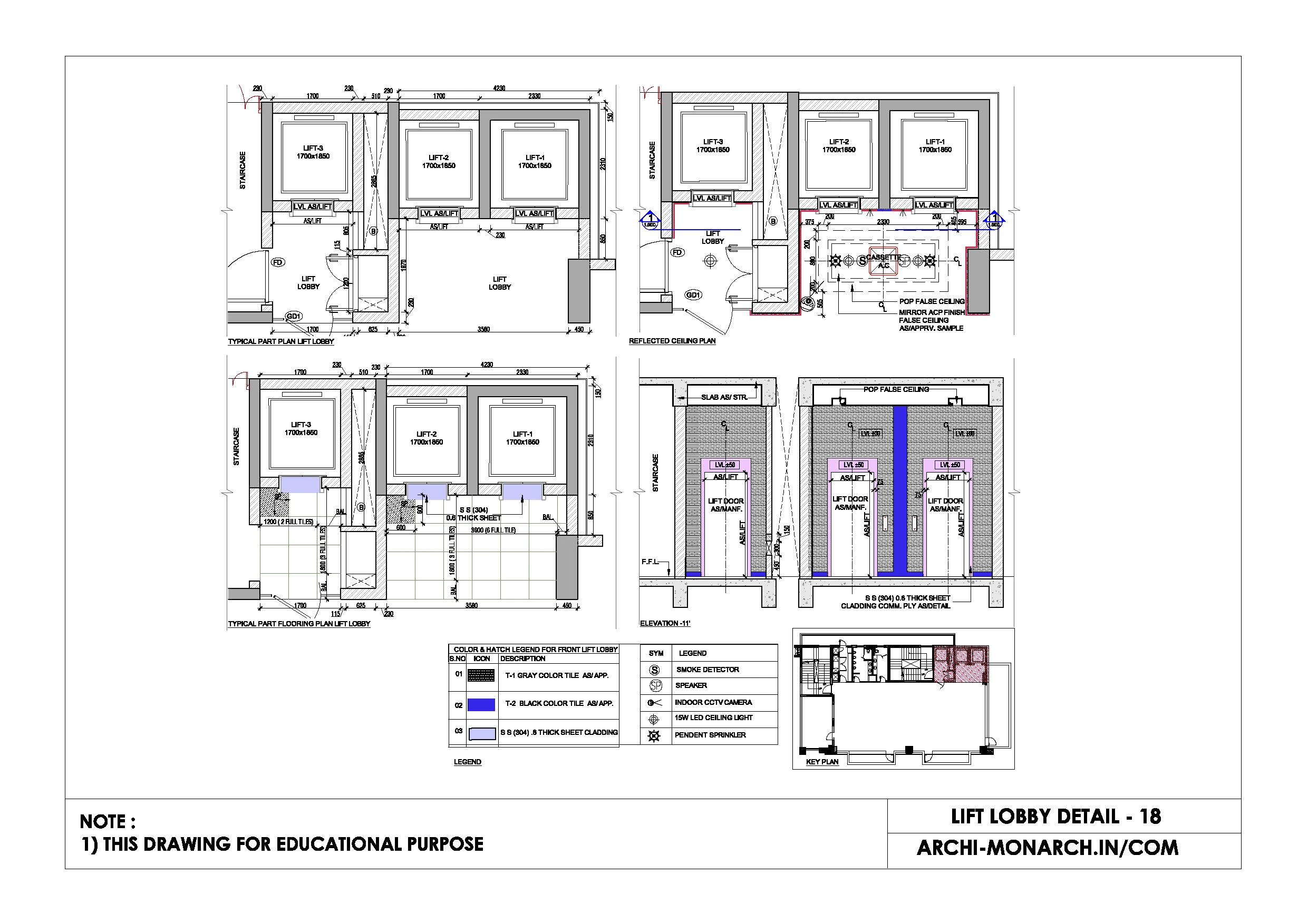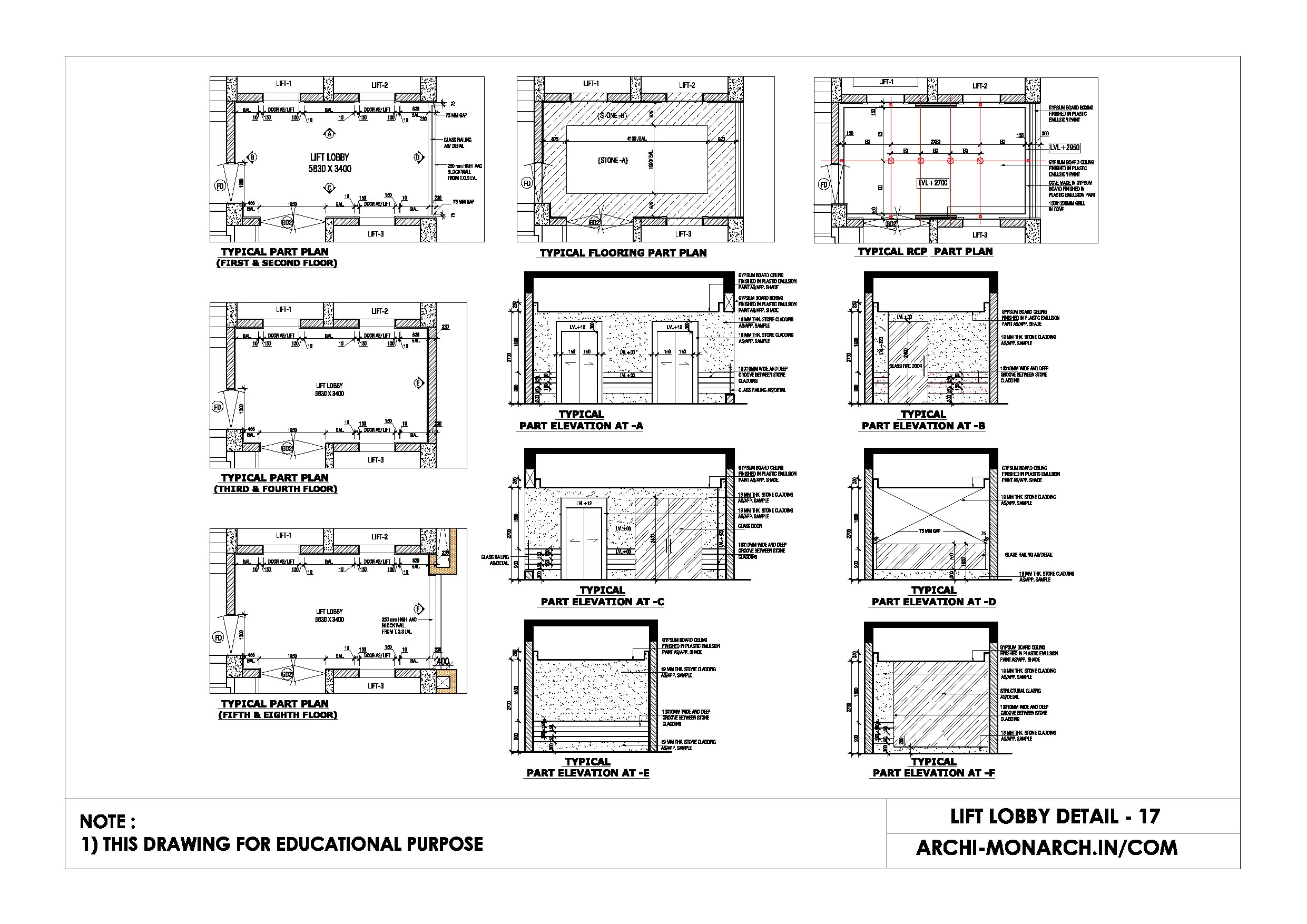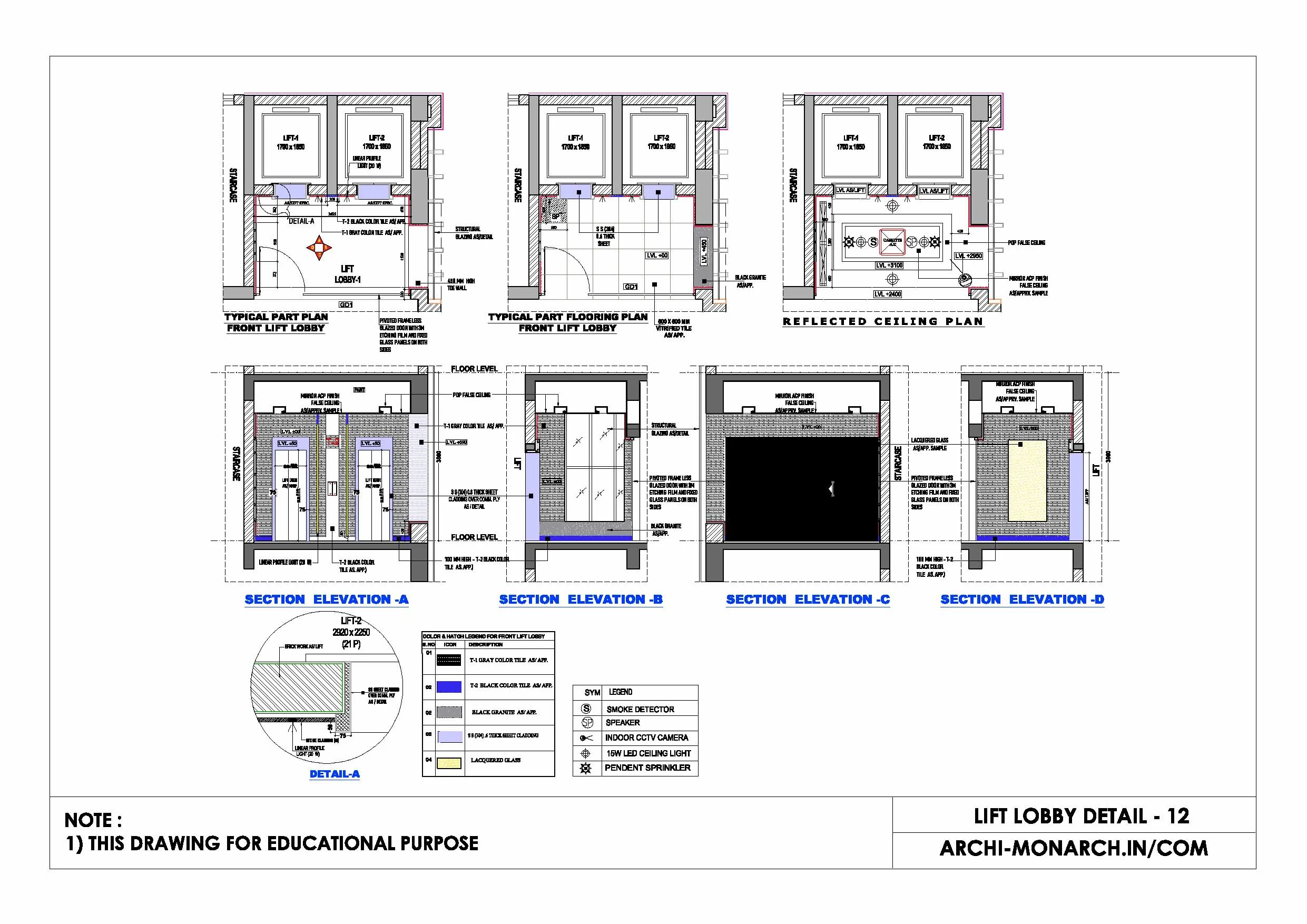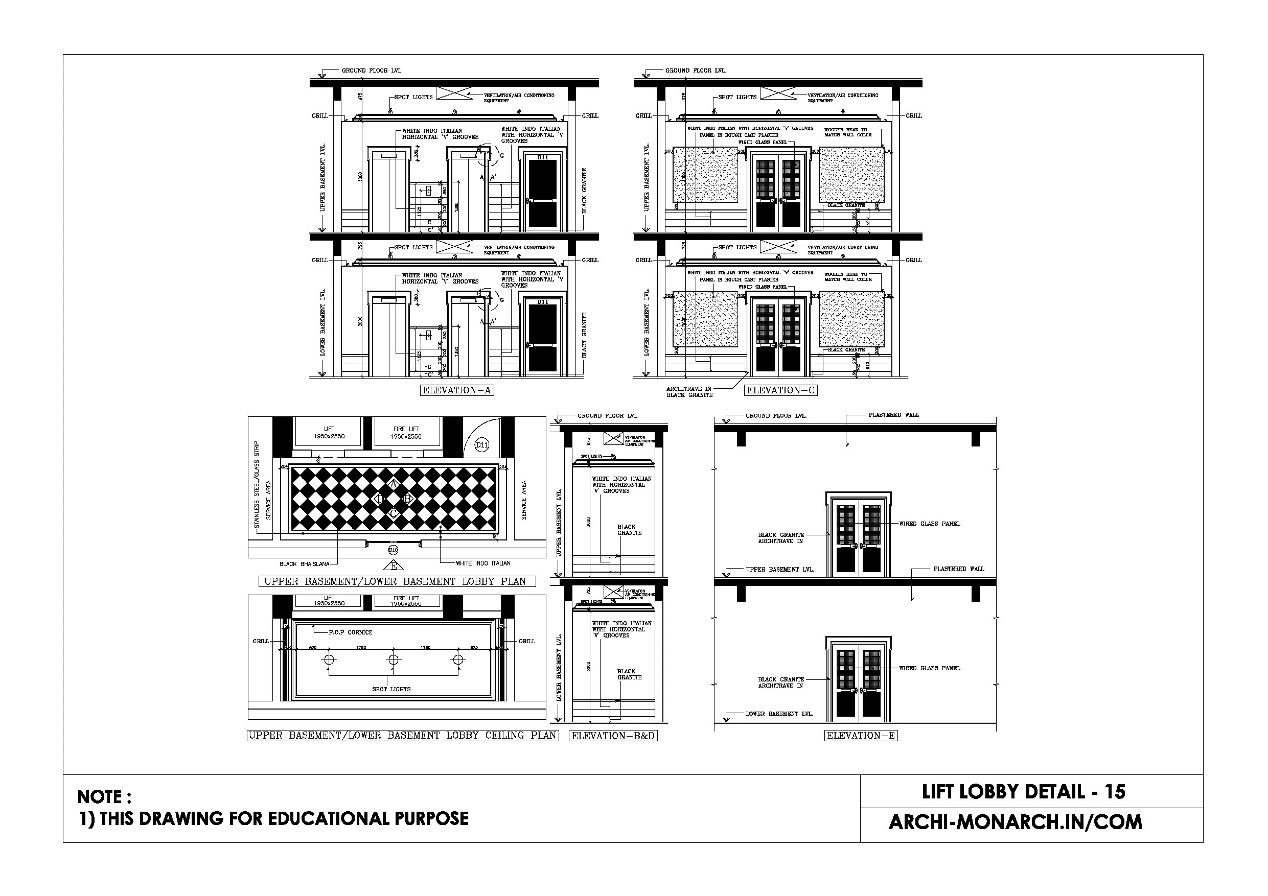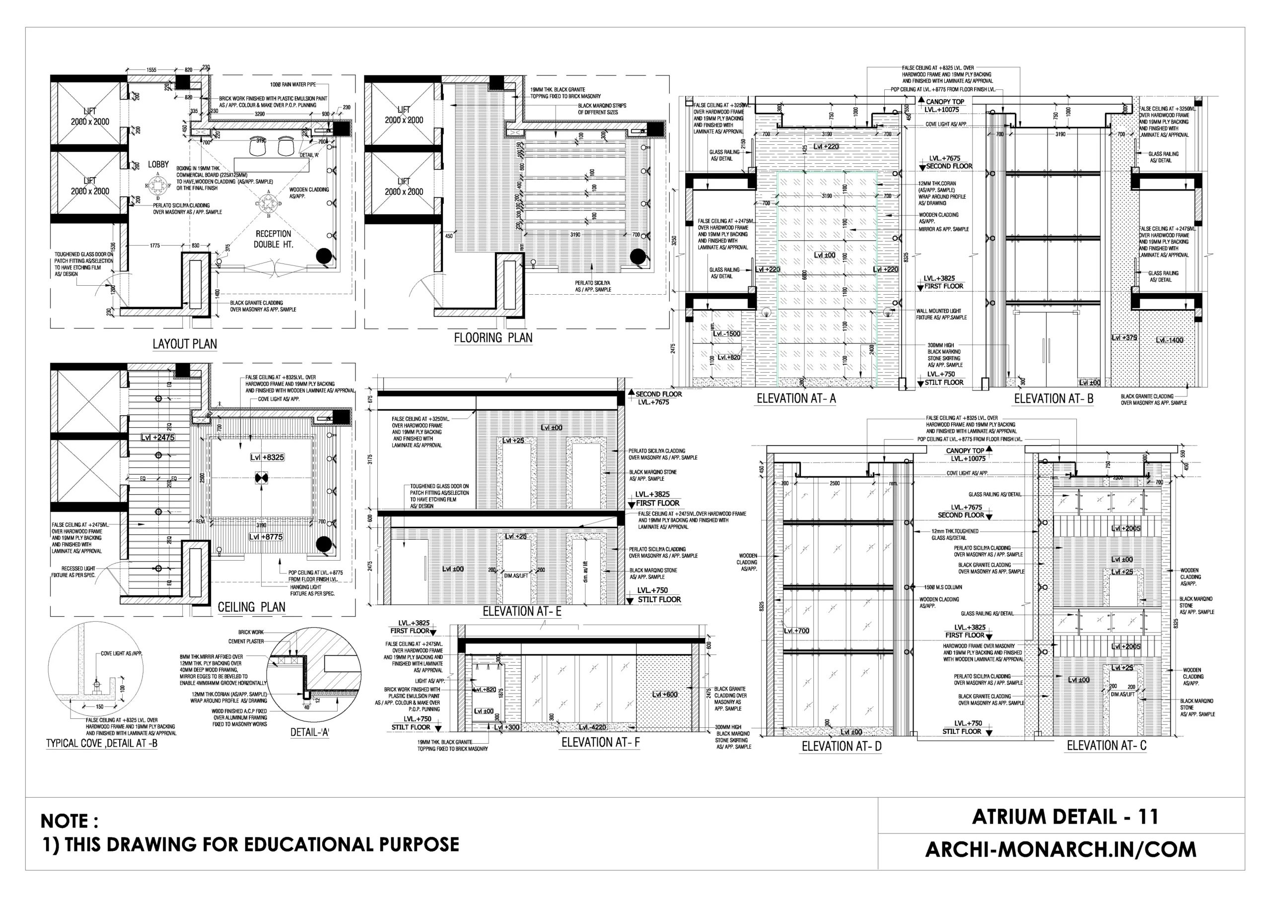 Architectural lift lobby and atrium detail drawings are technical drawings that provide specific information about the design and construction of lift lobbies and atria in buildings.
