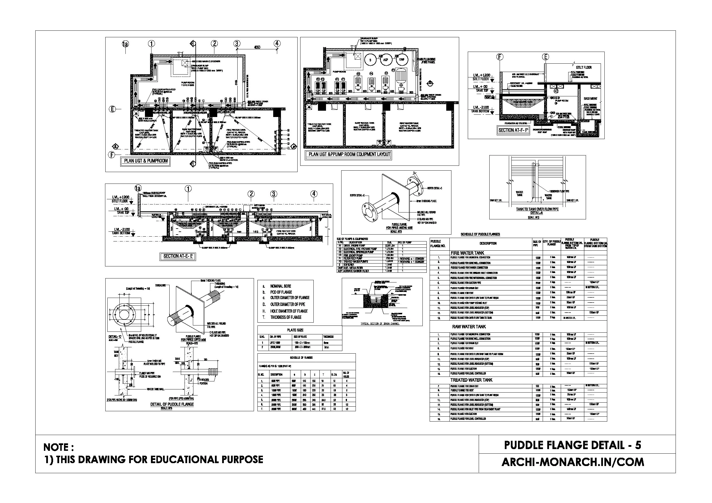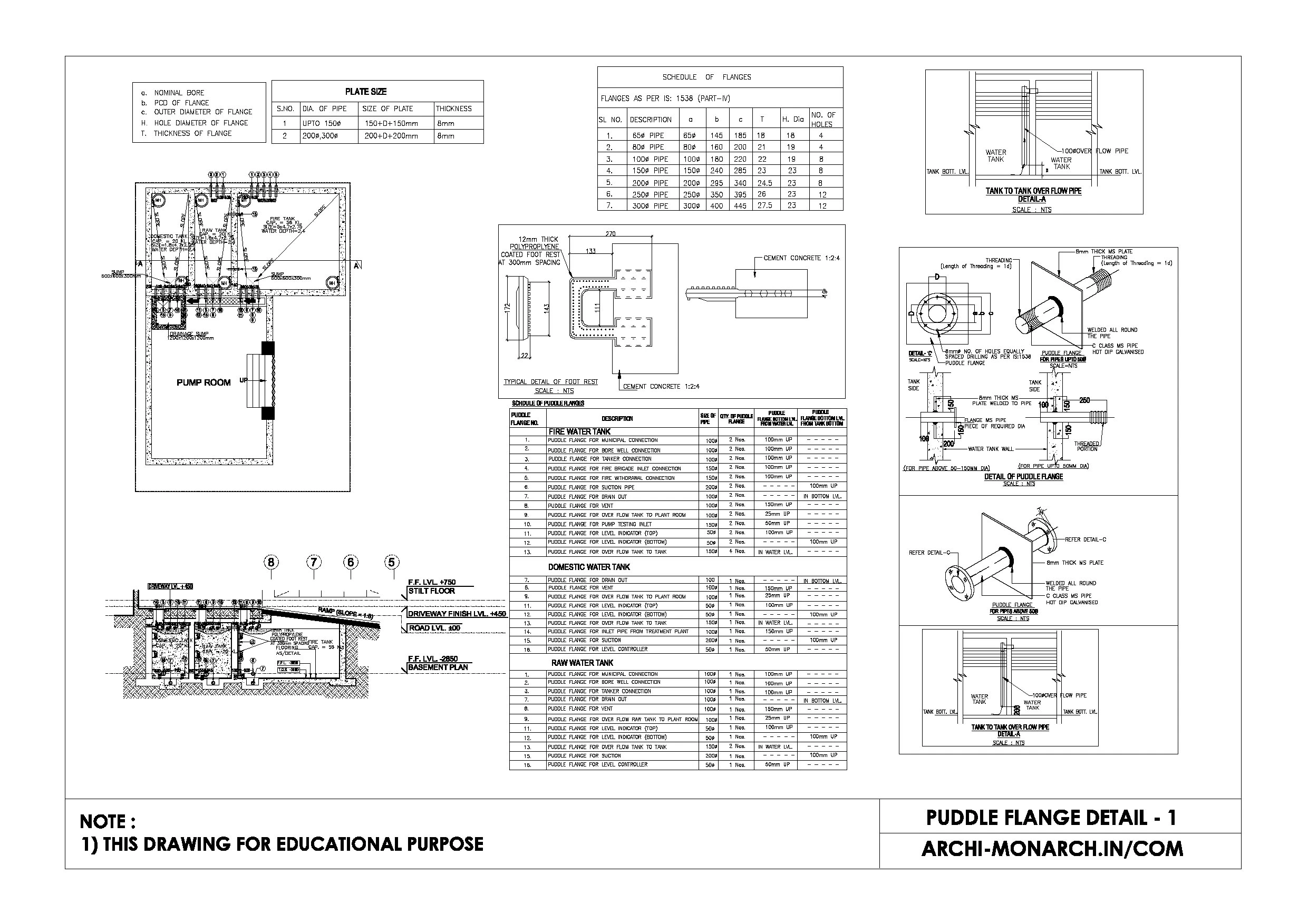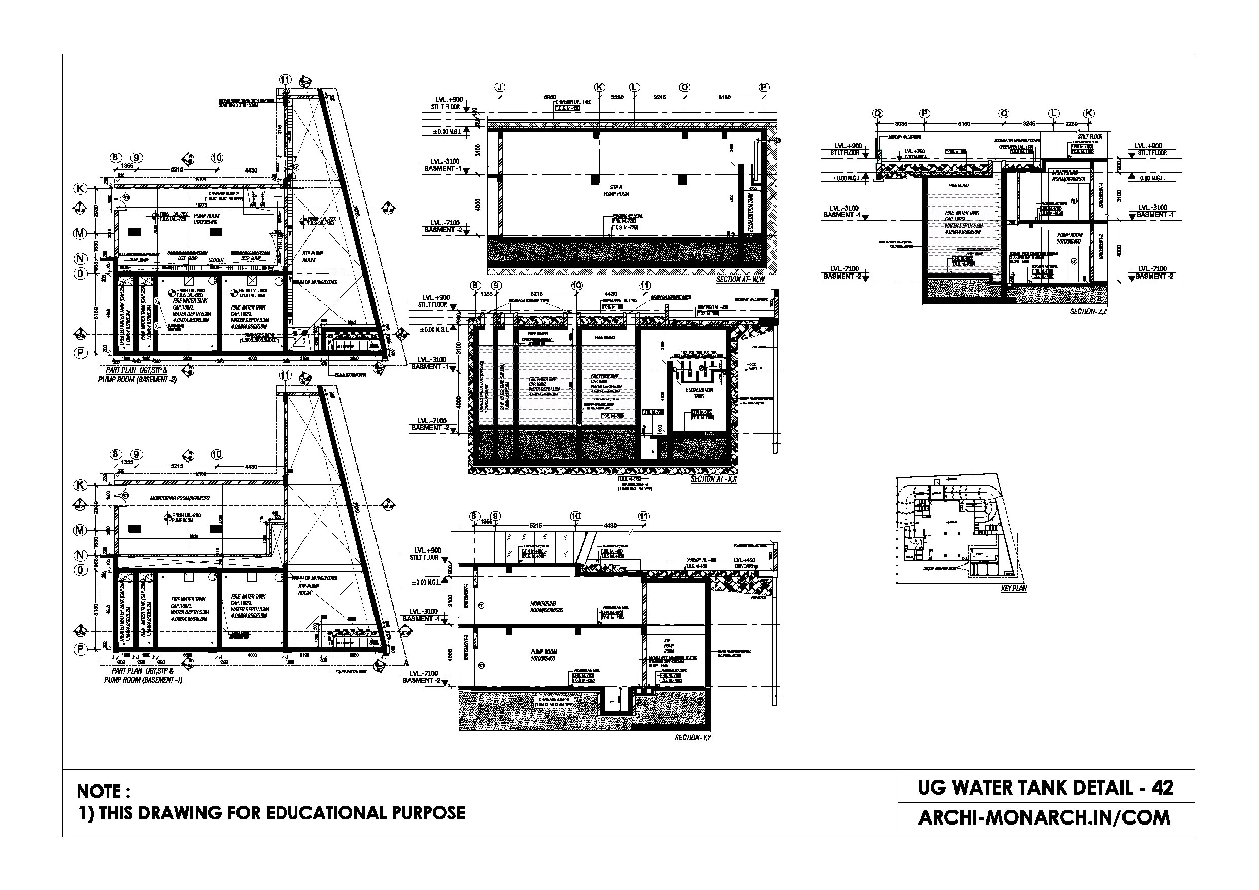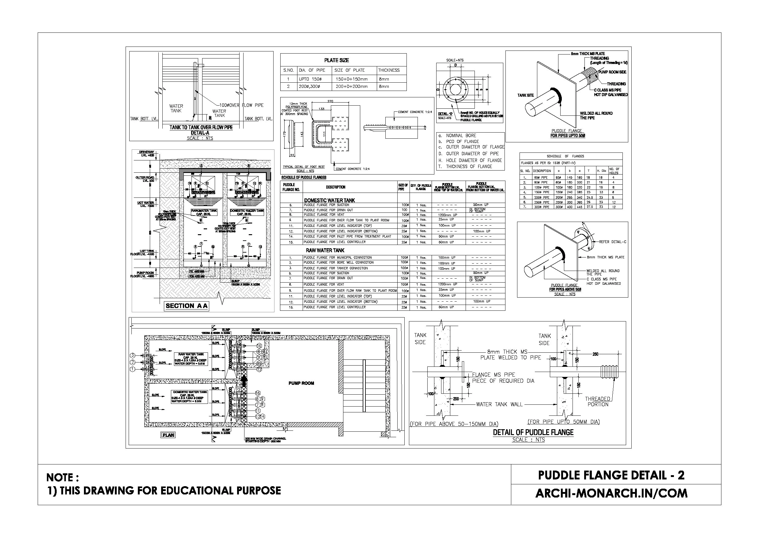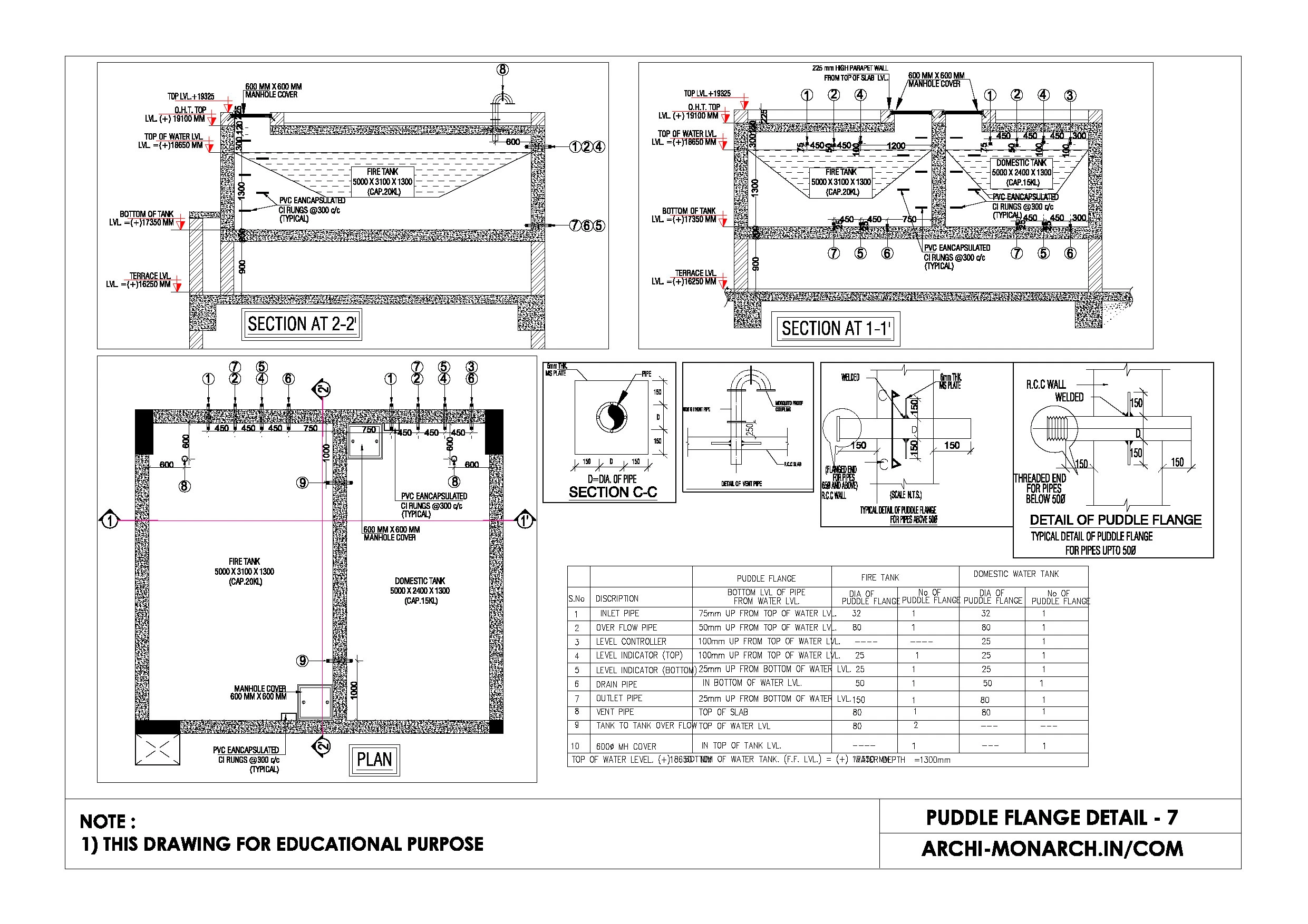 Architectural water tank detail drawings are technical drawings that provide specific information about the design and construction of a water tank. These drawings typically include information such as the tank’s capacity, material specifications, dimensions, and location in the building.